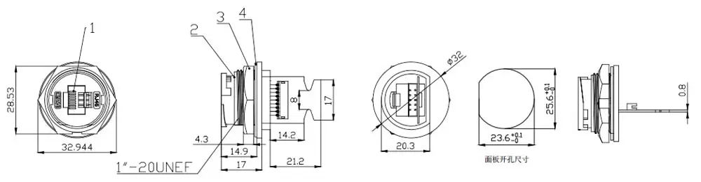 | RJ45 암 보드 후면 이더넷 포트에서 터미널 네트워크 케이블 소켓 (Bayonet) | 6A | E16B-FR6-PRF-TM |