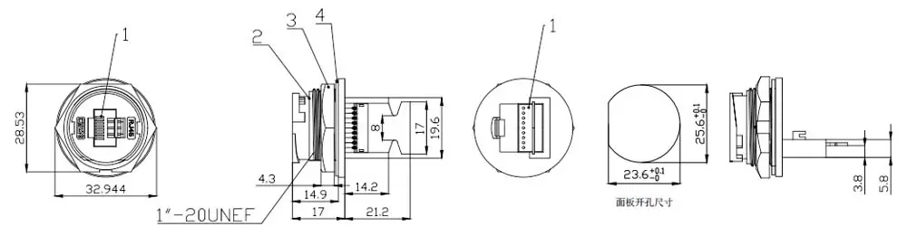 | RJ45 암 보드 후면 단일 이더넷 포트 테일 플레이트 소켓이있는 터미널 (스레드) | 6A | E16B-FR6-PRF-SN |
