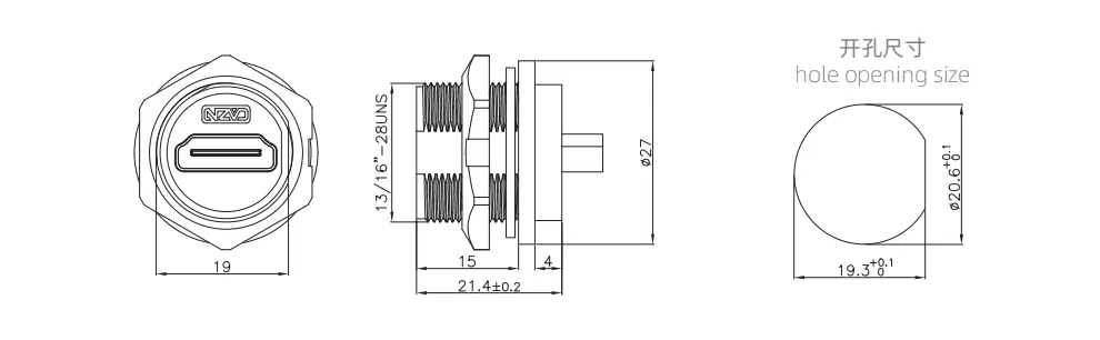 | HDMI 여성 대 여성 등 마운트 리셉터클 (스레드) | HDMI 2K | E13T-FH2-PRF |