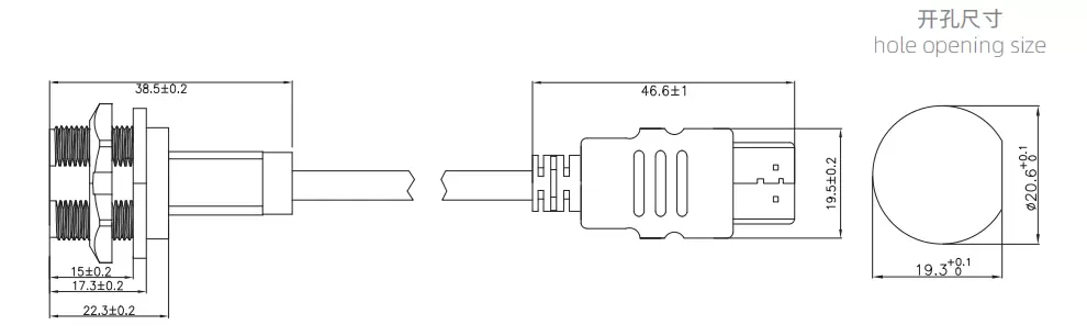 HDMI 여성 후면 패널 마운트 리셉터클 - 직선 수컷 케이블 (스레드) | HDMI 4K | 2m | E13T-FH4-PWF/MH4-NWA-2PV-S | ||