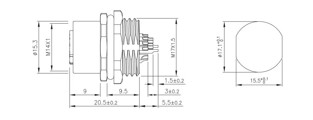 | M14 암형 전면 마운트 소켓 -납땜-18핀 | M14-S18-GWB M17 |