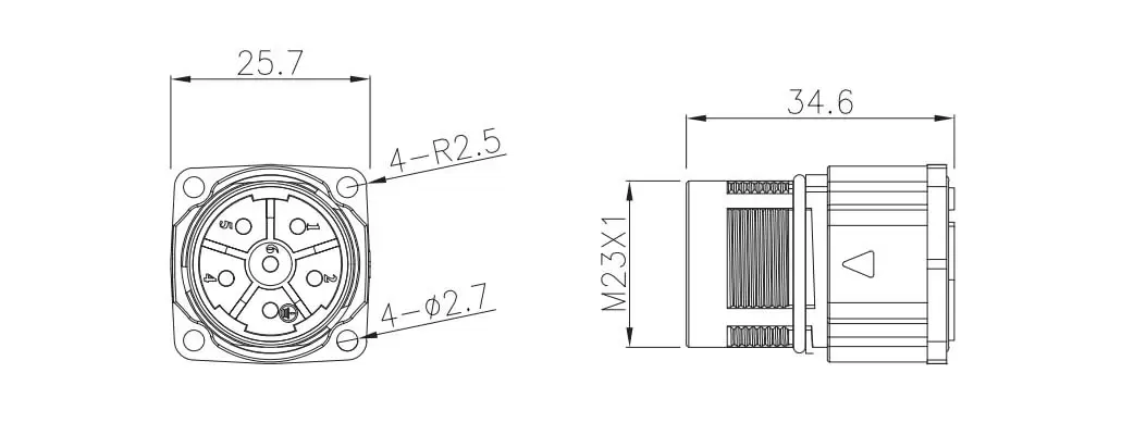 | M923 전원 수컷 직선 사각형 플랜지 소켓 (CRIMP) | M923-P6-GCH | 6 핀 | ||