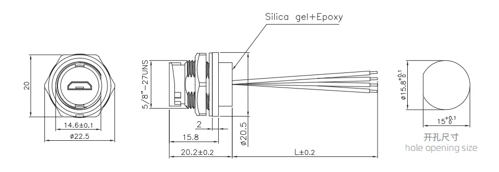 | 마이크로 USB 여성 등 마운트 마운트 리셉터클 ( Bayonet ) | E10B-FUM-PWF-0.2PV |