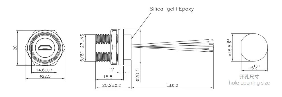 | 마이크로 USB 여성 등 마운트 마운트 리셉터클 (스레드) | E10T-FUM-PWF-0.2PV |
