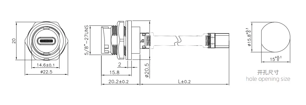 | Type-C 암컷/남성 FPC 플랫 케이블 3.1 속도 (Bayonet) | C 형 3.1 | 0.2m | E10B-FT3.1-PWF/MT3.1-NWA-0.2FPC |