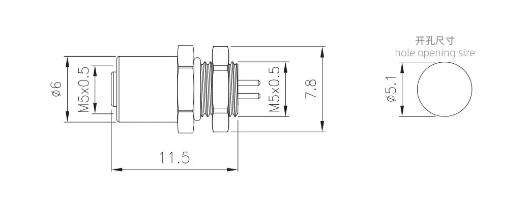 M5 암컷 프론트 마운트 소켓 (솔더)