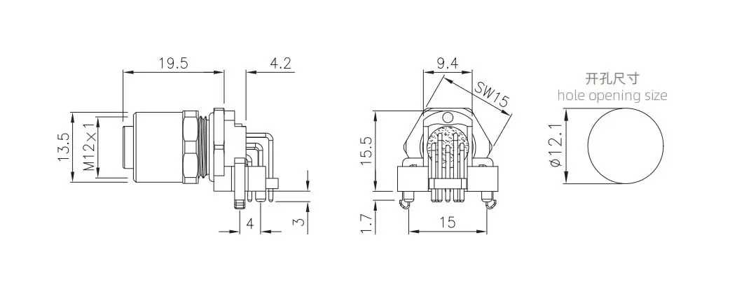 | M12 곡선 구멍 소켓 (PCB, 나사 M12*1) | M12-S3A- GPLM12 | M12-S3A- GPLM12 -JD | 3A | ||