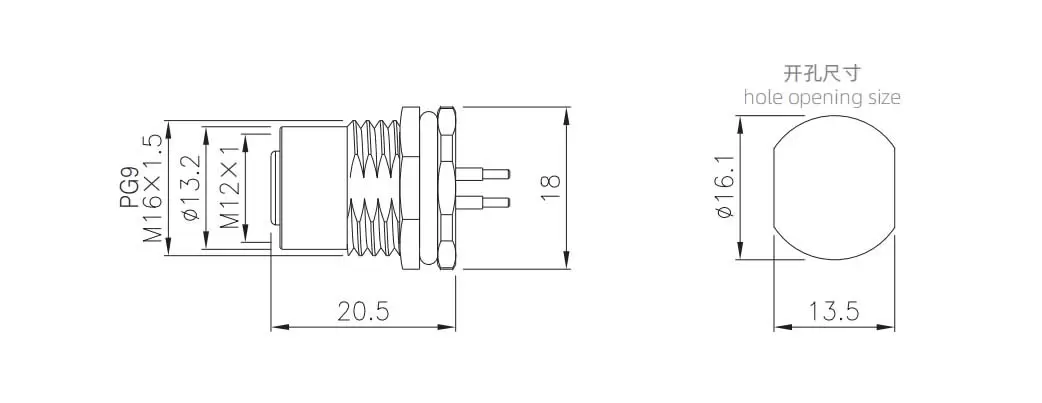 | M12 여성 백 마운트 소켓 (PCB) | M12-S3C-GPFM16 | M12-S3C-GPFP9 | 3c | ||