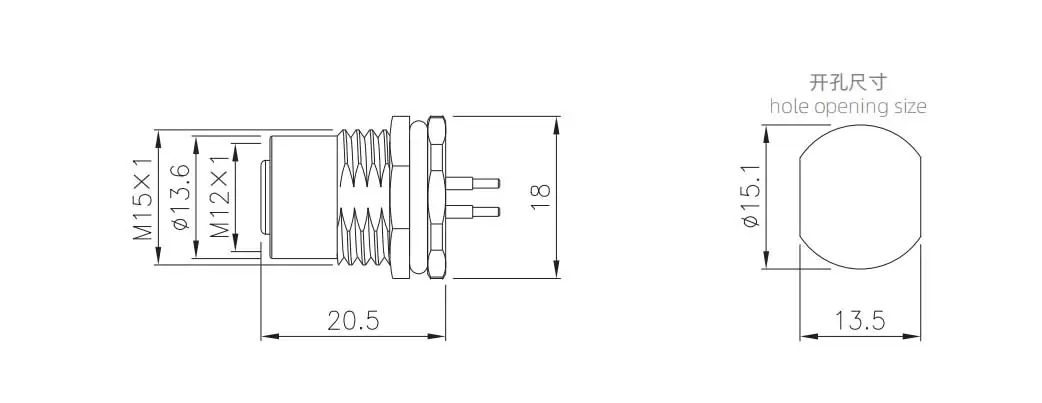 | M12 여성 백 마운트 소켓 ( PCB ) | M12-S5D-PPFM15 | 5d | ||