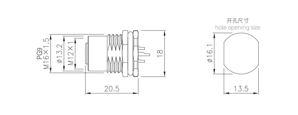 | M12 암 백 마운트 소켓 솔더 | M12-S3A-GWFM16 | M12-S3A-GWFP9 | 3A | ||