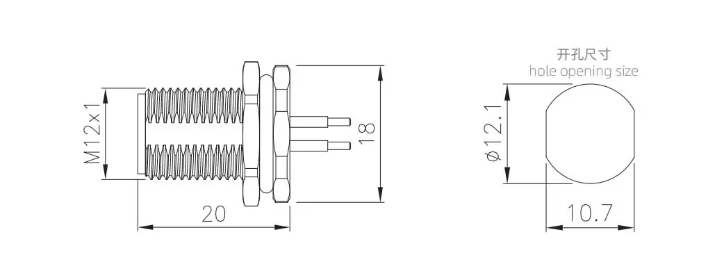 | M12 수컷 백 마운트 소켓 (PCB) | M12-P12A-GPFM12 | 12a | ||
