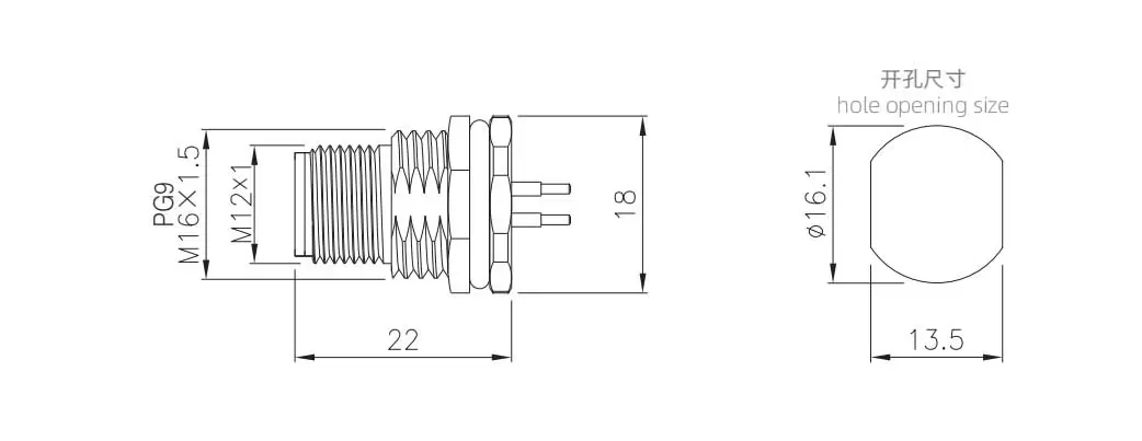 | M12 수컷 백 마운트 소켓 (PCB) | M12-P4C- GPFM16 | M12-P4C- GPFP9 | 4c | ||