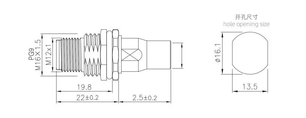 M12 아연 합금 쉘 암컷 백 마운트 소켓 솔더 나사 M16*1.5/PG9