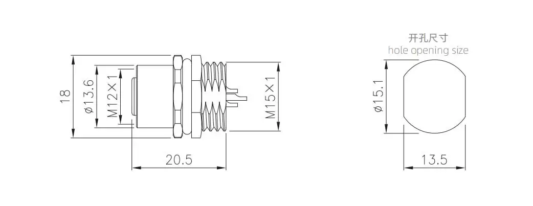 | M12 암 전면 마운트 소켓 (솔더, 플라스틱 타입) | M12-S12A-PWBM15 | 12a | ||