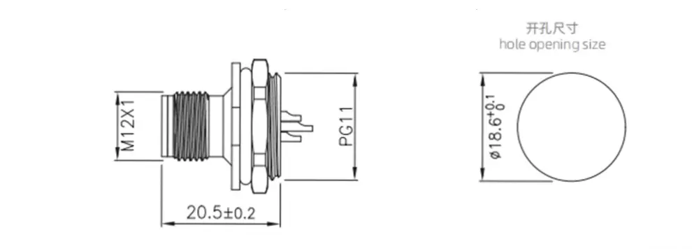 | M12 남성 전면 마운트 소켓 (솔더, 나사 PG11) | M12-P17A- GWBP11 | 17a |