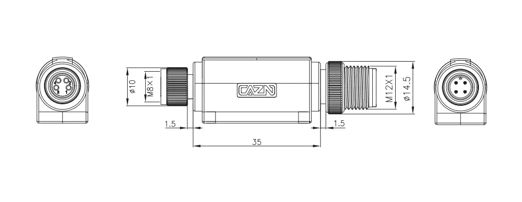 | M12 I- 타입 어댑터 (M12-M8, PS, 플라스틱 스타일) | M12-P3A-M8S3A-ISCNY | 3A | ||