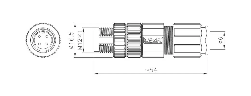 | M12 스트레이트 수컷 금속 조립 플러그 | M12-P4A-GWAP9 | 4a | ||