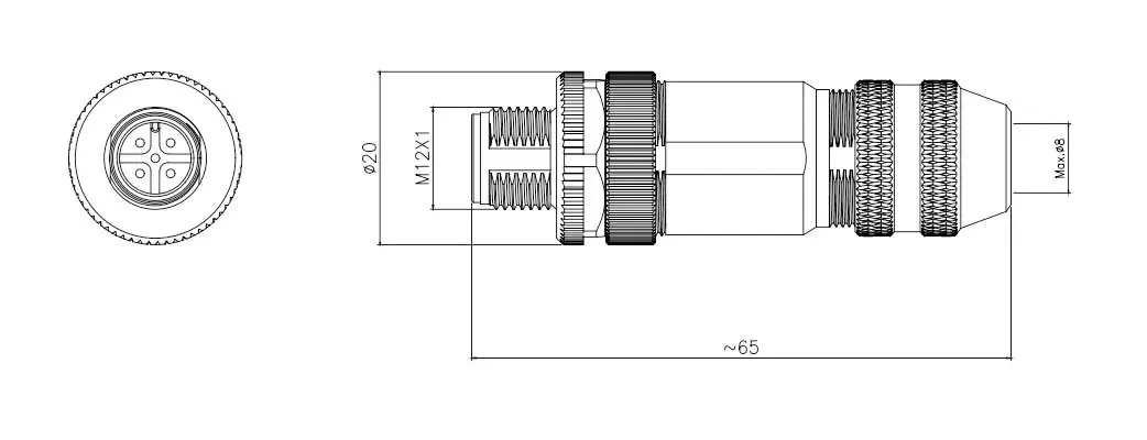 | M12 스트레이트 수컷 금속 조립 플러그 (나사) | M12-P8A-Glap7 | M12-P8A-Glap9 | 8a |