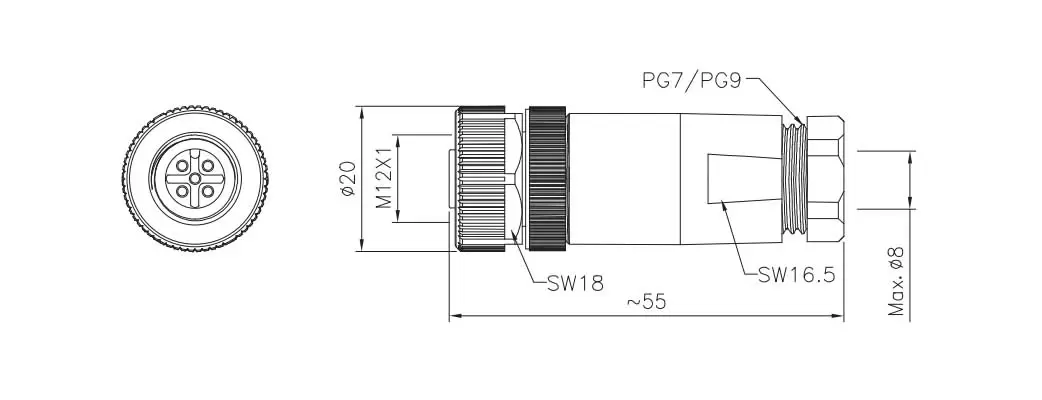 | 스트레이트 여성 플라스틱 조립 플러그 | M12-S8A-PLAP7 | M12-S8A-PLAP9 | 8a |