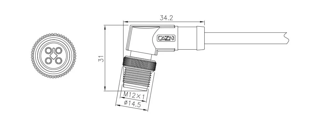 | M12 각진 남성 오버 모드 플러그 (전력 유형) | M12-P5L-MWD-XPV/XPU | (4+PE) l | ||