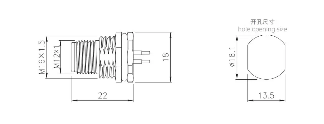 | M12 수컷 백 마운트 소켓 (전원 유형, 솔더, 나사 M16*1.5) | M12-P2T-GPFM16 | M12-P2T-GPF PG9 | 2T | ||