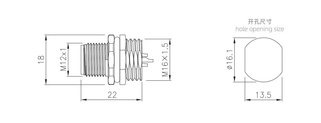 | M12 남성 전면 마운트 소켓 (전원 유형, 솔더, 나사 M16*1.5) | M12-P2T-GWBM16 | M12-P2T-GWB PG9 | 2T | ||