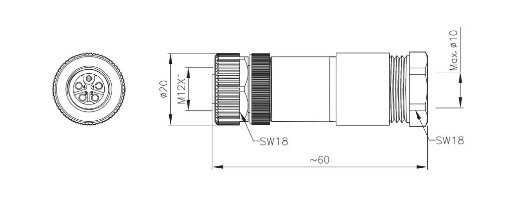 | M12 스트레이트 여성 플라스틱 조립 플러그 (전원 유형, 나사) | M12-S4L-PLAP11 | (3+PE) l | ||