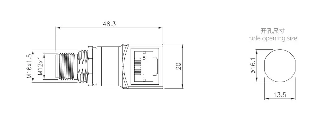 | M12 각진 수컷에서 RJ45 어댑터 | M12-P8A-RJ45F8-DSCNY | 8a | ||