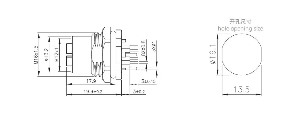 | M12 암 백 마운트 소켓 (데이터 유형, PCB, 나사 M16*1.5) | M12-S8X-GPFM16 | 8x | ||