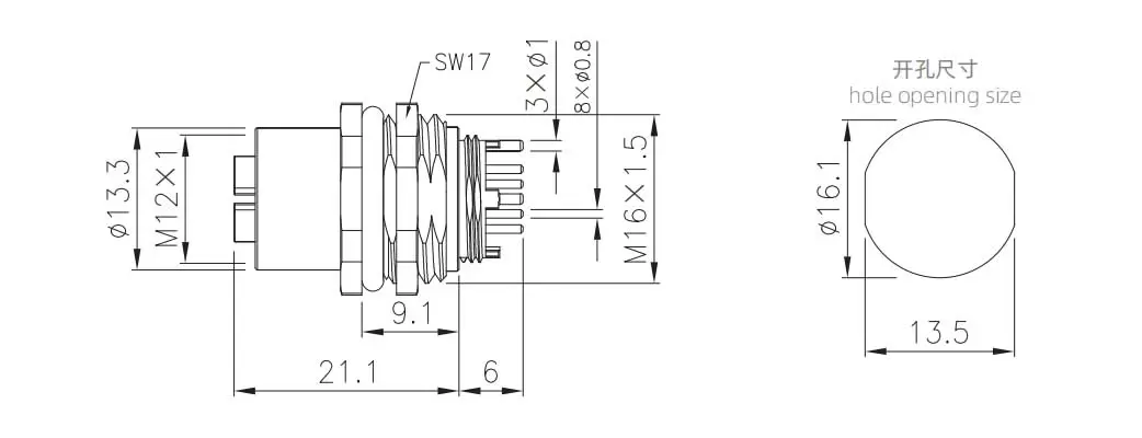 | M12 암 전면 마운트 소켓 (데이터 유형, PCB, 나사 M16*1.5) | M12-S8X-GPBM16 | 8x | ||