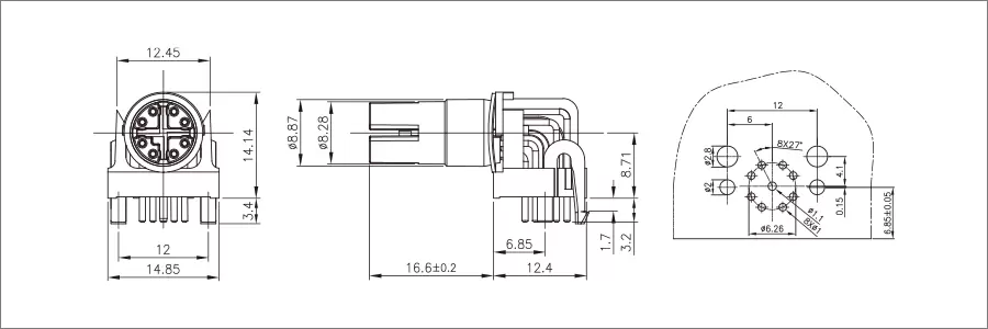 | M12 직각 여성 소켓 (PCB) | M12-S8X-GPLM12-BJD | 8x | ||