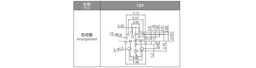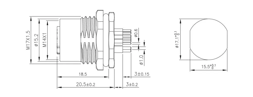 | M14 암 백 마운트 소켓 (PCB) 나사 M17x0.5 | M14-S18-GPFM17 | 18 핀 |