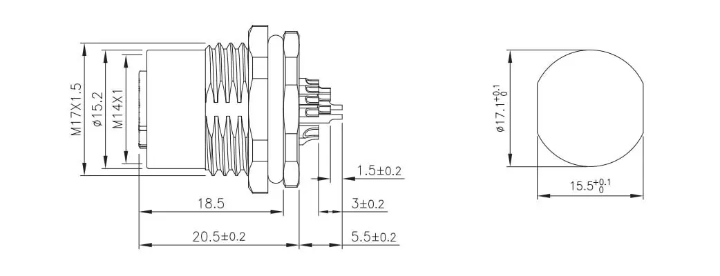 | M14 암 후면 마운트 소켓 (Solder) Screwm17x1.5 | M14-S18-GWFM17 | 18 핀 |