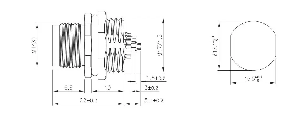 M14 암 전면 마운트 소켓 (솔더, 나사 M17x1.5)