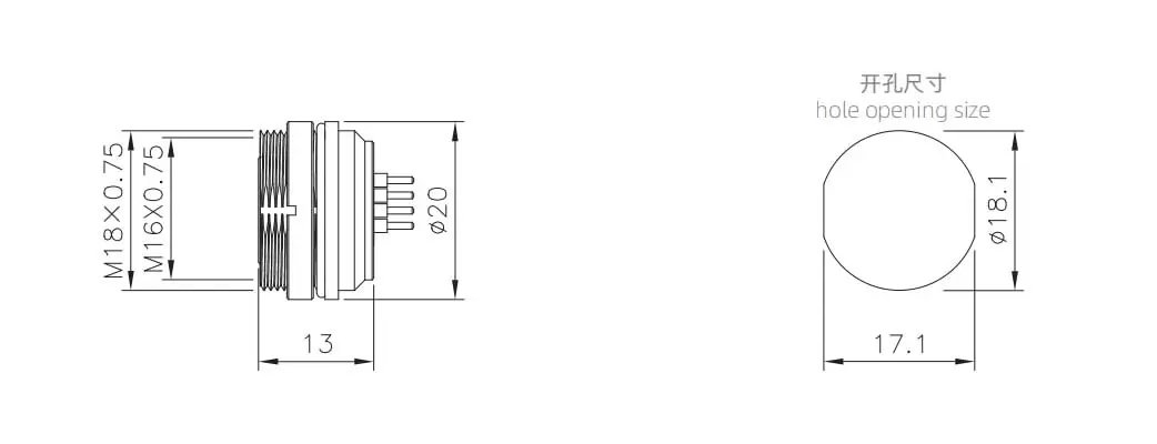 | M16 여성 백 마운트 소켓 (PCB) | M16-S2-GPFM18 | 2 핀 | ||