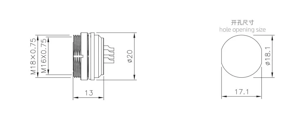 | M16 암컷 백 마운트 소켓 (Solder) | M16-S3-GWFM18 | 3 핀 | ||