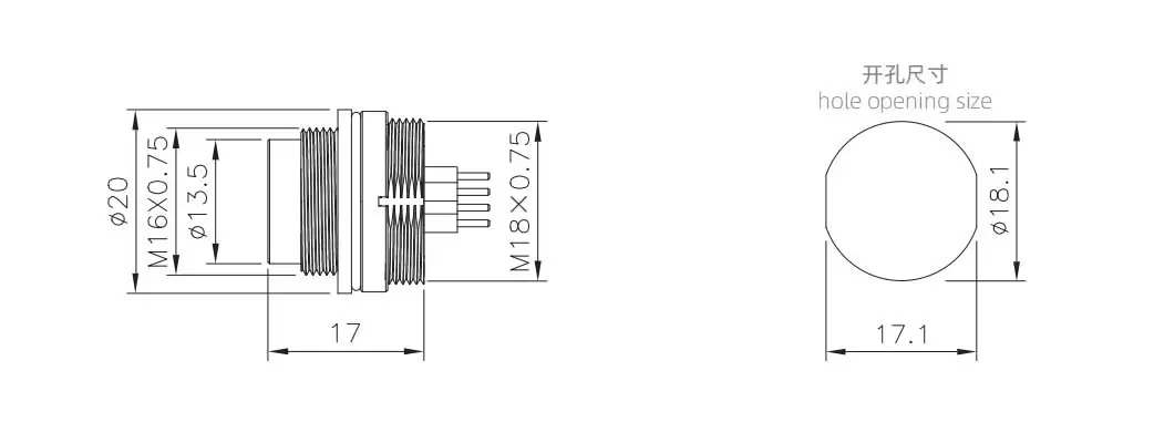| M16 남성 전면 마운트 소켓 (PCB) | M16-P4-GPBM18 | 4 핀 | ||