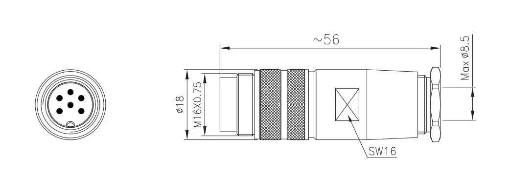 | M16 스트레이트 남성 금속 조립 플러그 (솔더) | M16-P7-GWAP9 | 7 핀 | ||