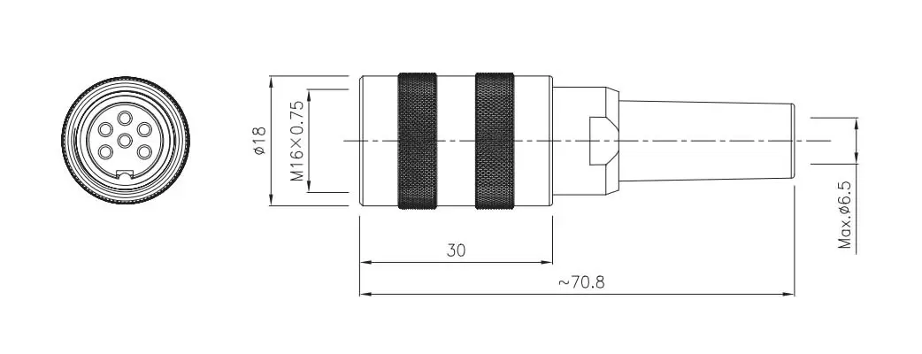 | M16 스트레이트 암 금속 조립 플러그 (땜납, 플라스틱 튜브 ) | M16-S6-PWA05-PT | 6 핀 | ||