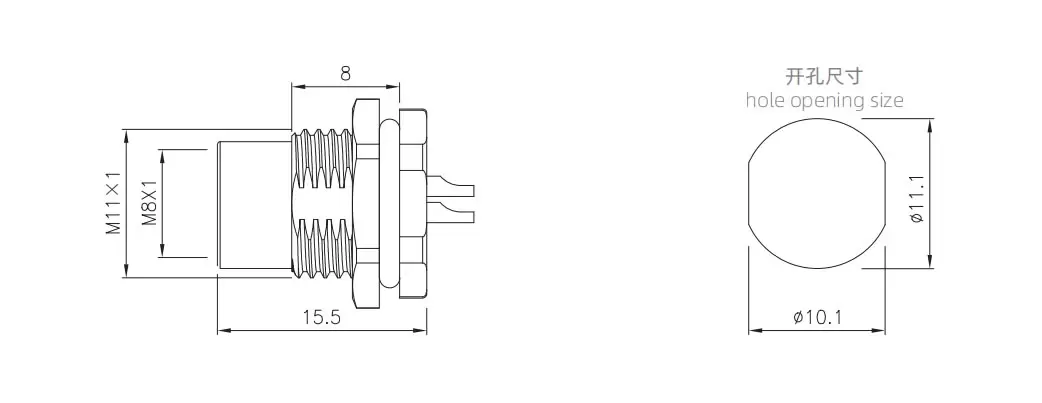 M8 남성 백 마운트 소켓 (PCB, 나사 M11*11)