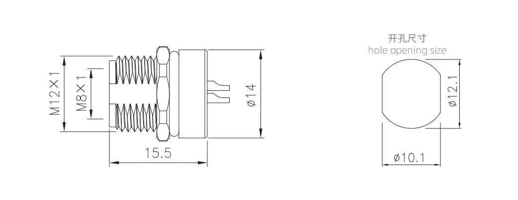 | M8 암 등 마운트 소켓 (땜납, 나사 M12*1) | M8-S4A-GWFM12 | 4 핀 A- 코드 | ||
