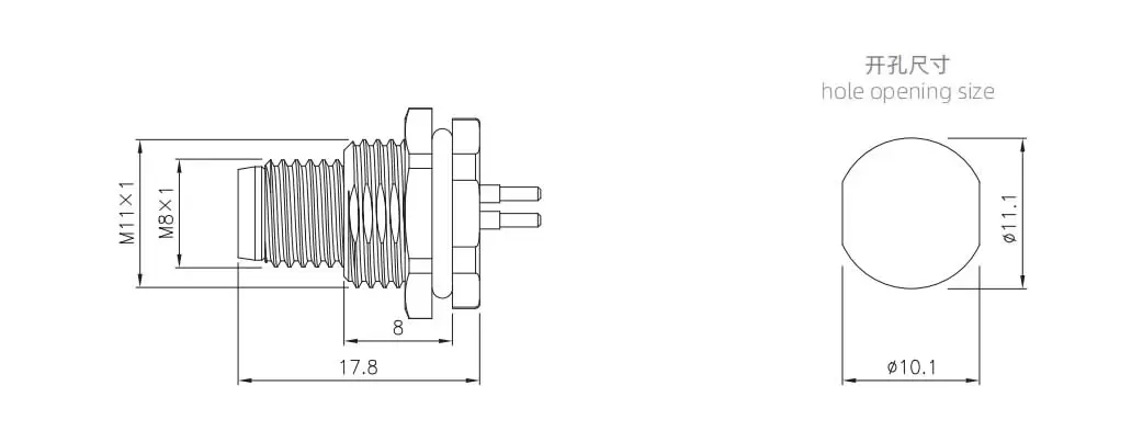 | M8 남성 백 마운트 소켓 (PCB, 나사 M11*1) | M8-P3A-GPFM11 | 3 핀 A- 코드 | ||