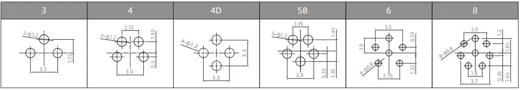 | M8 수컷 백 마운트 소켓 (PCB, 나사 M8*1, 접지 유형) | M8-P6A-GPFM8-JD | 6 핀 A- 코드 | ||