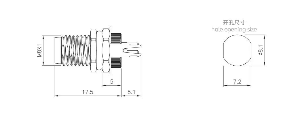 | M8 수컷 백 마운트 소켓 (PCB, 나사 M8*1, 접지 유형) | M8-P3A-GPFM8-JD | 3 핀 A- 코드 | ||