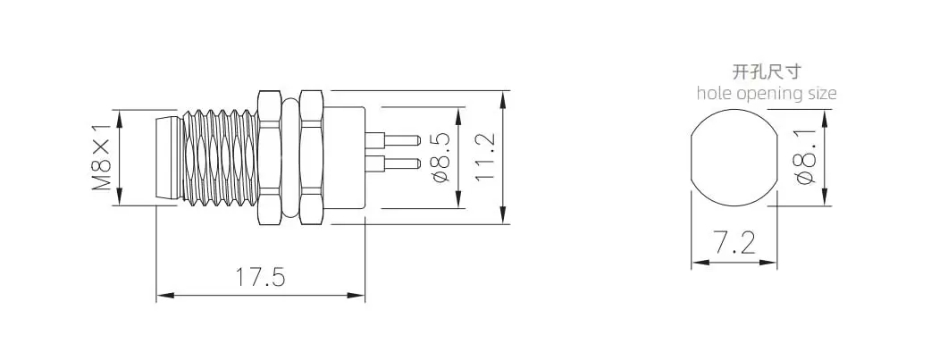 | M8 수컷 백 마운트 소켓 (PCB, 나사 M8*1, 금속 인터페이스) | M8-P3A-GPFM8-GK | 3 핀 A- 코드 | ||