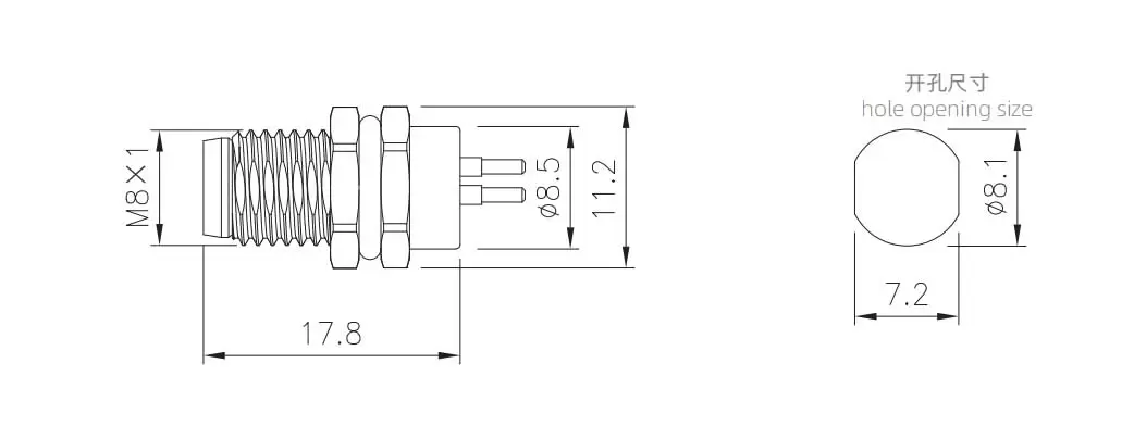 | M8 남성 백 마운트 SOCEKT 밸 (PCB) 나사 M8X0.5 | M8-P3A-GPFM8 | 3 핀 A- 코드 | ||