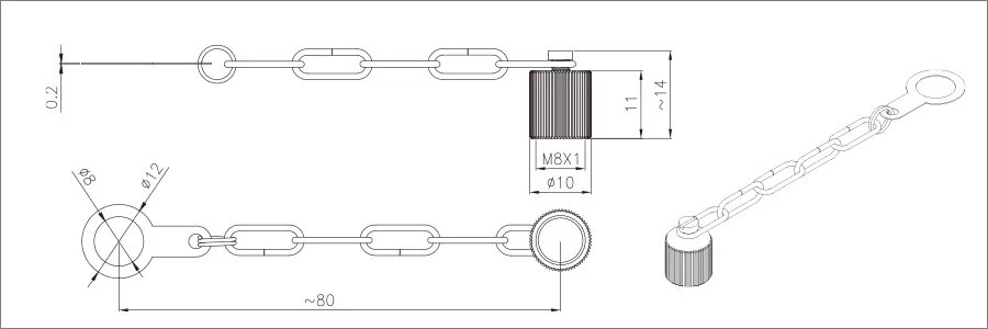M8 올 금속 먼지 덮개 (외부 나사+금속 체인)