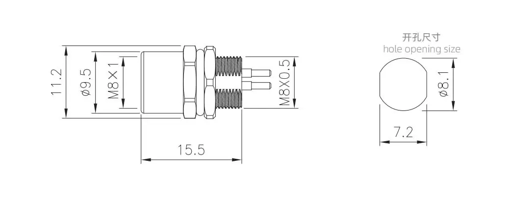 M8 남성 프론트 마운트 소켓 (솔더, 나사 M8*0.5, 금속 인터페이스)
