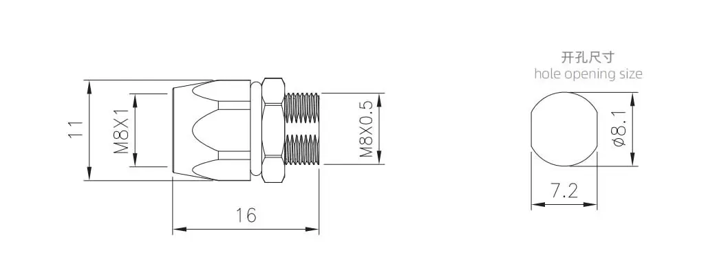M8 암 전면 마운트 소켓 (PCB, 나사 M8*0.5)