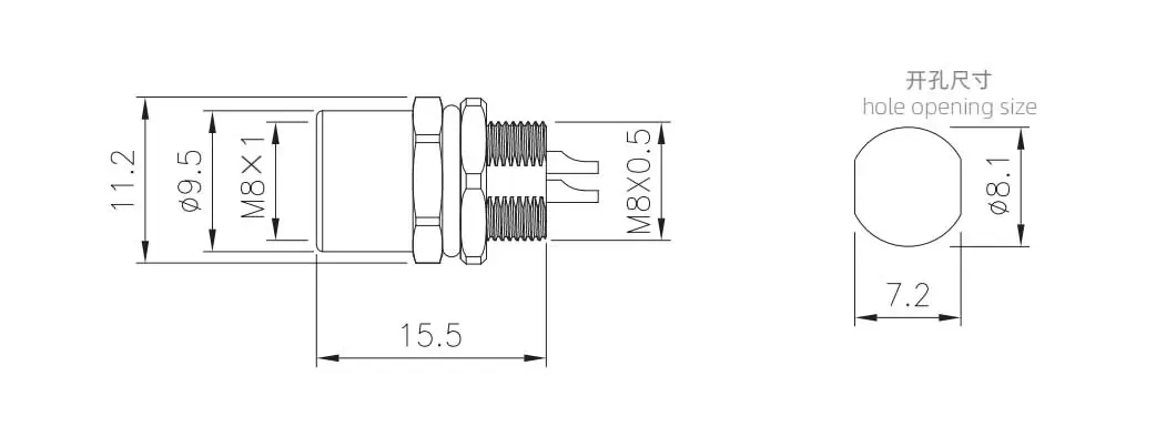 M8 남성 프론트 마운트 소켓 (솔더, 나사 M8*0.5, 금속 인터페이스)